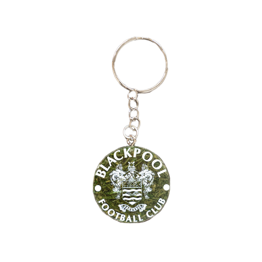 The grass, which has been mown from Blackpool FC's pitch, is specially treated and encased in acrylic.